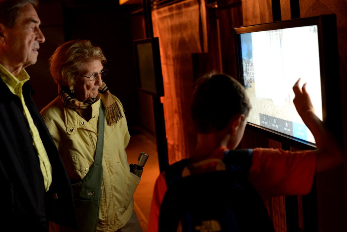 Graham is showing Poppy and Dodie how the interactive displays work